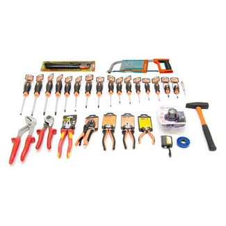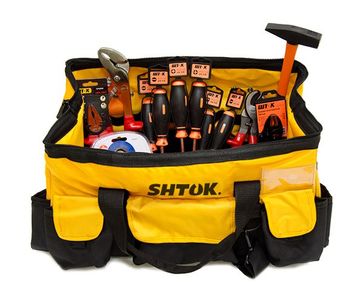 Сумка; Молоток слесарный, 400 г, фибергласовая обрезиненная рукоятка//SPARTA, шт; Пассатижи "Мини" 120 мм; Пассатижи 1000В 215 мм, усиление 42%; Плоскогубцы 1000В 160 мм; Кусачки боковые 1000В 160 мм; Переставные клещи 300 мм; Ручной зажим струбцина 180 мм с удлиненными губкам; Рулетка 2м AVIORA Sprint, 1 фиксатор 402-155, шт; Отвертка 3х75; Отвертка 5х100; Отвертка 6,5Х125; Отвертка 6,5Х150; Отвертка 8Х150; Отвертка 6,5Х45; Отвертка PH0 60; Отвертка PH1 75; Отвертка PH2 100; Отвертка PH2 125; Отвертка PH3 150; Отвертка PH2 45; Отвертка PZ0 60; Отвертка PZ1 80; Отвертка PZ2 100; Отвертка PZ3 150; Ножовка по металлу; Фонарь; Ножовка садовая складная; Отвертка индикаторная; Кабелерез 1000В 250 мм; Изолента; Карандаш для записи;