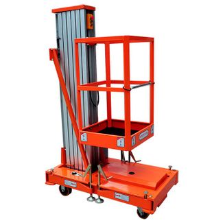 Телескопическое устройство для подъёма грузов весом до 125 кг. Высота рабочей зоны достигает 12 метров. Есть пульт (на платформе) и панель внизу устройства для максимального удобства управления из любой точки. Подъёмник укомплектован двумя аккумуляторными батареями, установлен электро-индикатор заряда. Для безопасности работы на платформе есть ограждения (105 см) и коврик из резины, имеется кнопка экстренного отключения. На корпусе зафиксирован спиртовой уровень, что делает возможным контроль вертикального положения. При работе на неравномерных поверхностях выносные опоры обеспечивают высокую устойчивость. None Есть доставка.