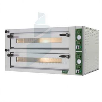 Электрическая двухуровневая печь для пиццы, с механическим управлением. Под печи изготовлен из огнеупорной керамики. Фронтальная панель и дверь изготовлены из нержавеющей стали. Дверь со стеклом, ручка на левой и правой стороне, посдветка рабочей камеры. Независимые термостаты для верха и пода камеры. Макс. t - 450 C, камера 1050700150, макс.загрузка по 6 пицц 30/34см на каждый уровень.Длина нетто, мм : 1440 Ширина нетто, мм : 1010 Высота нетто, мм : 720 Мощность электрическая, кВт : 18 Напряжение, В : 380 Кол-во фаз : 3 Вес нетто, кг : 231 Размер камеры, мм : 700*1050 Количество камер: 2