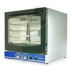 ТЕХНИЧЕСКОЕ ОПИСАНИЕ Корпус и камера печи изготовлены из нержавеющей стали AISI430. Откидывающаяся дверца печи выполнена из термостойкого стекла. Она имеет двойное остекление для защиты обслуживающего персонала от ожогов при случайном прикосновении. Внутри камеры расположены 4 уровня направляющих для противней размером 430х330 мм. Расстояние между уровнями составляет 75 мм. В комплект поставки входят алюминиевые противни – 4 шт. Нагрев осуществляется с помощью ТЭНов, установленных вокруг вентилятора. Печь имеет электромеханическую систему управления. Регулировка температуры камеры в диапазоне +60°…+270°С осуществляется с помощью терморегулятора. Для автоматизации процесса приготовления печь имеет таймер на 120 минут. Таймер автоматически отключает работу печи по истечении установленного времени. Таймер имеет положение "бесконечная работа". Печь оснащена подсветкой камеры. Печь имеет возможность пароувлажнения камеры. Подача пара осуществляется при нажатии кнопки "ПАР".Габаритные размеры (длина×ширина×высота) ,мм: 560х650х565