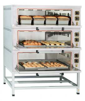 Шкаф пекарский электрический ЭШП-3 подовый с функцией пароувлажнения предназначен для выпечки кондитерских и хлебобулочных изделий на предприятиях общественного питания самостоятельно или в составе технологической линии Основные характеристики электрического пекарского шкафа ЭШП-3:- 3 пекарные камеры;- система пароувлажнения;- материал изготовления каждой камеры - нержавеющая сталь;- внутренние размеры каждой камеры 1035x800x280 мм;- вместимость каждой камеры - 24 хлебные формы № 7;- поды из углеродистой стали толщиной 3 мм;- дверцы из нержавеющей стали;- каждая дверца оборудована жаропрочным смотровым стеклом; - внутренняя подсветка каждой камеры;- ТЭН-ы из нержавеющей стали AISI 304;- раздельная плавная регулировка температуры верхних и нижних ТЭН-ов;- 2 механических термостата для каждой камеры;- рабочий диапазон температуры в камере от +50 до +320 С;- разогрев до +240 С за 30 минут;- аварийный термовыключатель предохраняет печь от перегрева свыше +360 С;- облицовка из нержавеющей стали;- боковые и задняя стенки из окрашенного оцинкованного металла;- регулируемые по высоте ножки;- разборная конструкция, поставляется в одной упаковке.Номинальная потребляемая мощность, кВт: 14,64 Номинальное напряжение, В: 400 Количество камер: 3 Пароувлажнение: + Площадь пода, м2: 2,25 (3х0,75) Диапазон регулирования температуры, °C: +50...+320 Время разогрева камеры до 240 °C, мин: 30 Внутренние размеры камеры, мм: 1035х800х280(250) Вместимость каждой камеры: 24 хлебные формы № 7 Габаритные размеры, мм: 1300х1107х1700 Масса, кг: 331 None Страна производства: Россия Есть доставка.