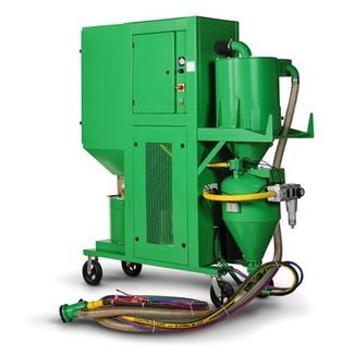 Установка передвижная беспыльной абразивоструйной очистки BRS предназначена для эффективной абразивоструйной обработки там, где это невозможно сделать, не загрязняя окружающую среду. Ещё одним преимуществом данной установки является то, что системы замкнутого цикла и отвода пыли из зоны очистки требует минимальных защитных мер для обеспечения безопасности оператора. Управление установкой происходит при помощи пульта дистанционного управления DMH. Основным рабочим компонентом установка BRS является специальная насадка, включающая в себя абразивоструйное сопло, специальную щётку, предотвращающую вылет абразива в окружающую среду, систему отвода пыли и остатков абразива из зоны очистки. ОБЛАСТЬ ПРИМЕНЕНИЯ Установка беспыльной абразивоструйной очистки BRS предназначена для эффективной абразивоструйной обработки металлических конструкций и деталей с поддержанием чистоты окружающей рабочей зоны. СТАНДАРТНЫЙ КОМПЛЕКТ ПОСТАВКИ Поставляется на передвижном основании и включает в себя: бак для абразива, циклонный пылевой сепаратор с системой рекуперации, коллектор пылесборник с фильтром и функцией импульсной очистки, пневматическую систему контроля давления, блок подготовки воздуха с фильтром сепаратором, пульт дистанционного управления DMH, абразивоструйное сопло, щётку, систему отвода пыли и абразива. ФУНКЦИОНАЛЬНЫЕ ОСОБЕННОСТИ