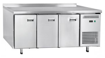 Стол холодильный среднетемпературный СХС-70-021 предназначен для хранения полуфабрикатов мяса и рыбы, или других скоропортящихся продуктов. Может использоваться как самостоятельно, так и встраиваться в барные стойки. Основные характеристики среднетемпературного холодильного стола СХС-70-021:- рациональное использование рабочего пространства кухни за счет совмещения в одном изделии функции холодильного шкафа и рабочего стола;- климатический класс изделия - 5;- поверхность стола - ровная неохлаждаемая поверхность с бортом;- нержавеющая сталь AISI 304 толщиной 1 мм (за исключением задней стенки) - снаружи и внутри;- толщина стенок 56 мм;- холодильный агрегат на основе компрессора Danfoss;- хладагент - R404a;- электронный блок управления с возможностью регулирования и поддерживания необходимой температуры;- динамическое охлаждение - воздухоохладитель с вентилятором для равномерного распределение температуры внутри полезного объема;- температура внутри охлаждаемого объема стола от -2 до +8 °C;- работа при температуре окружающей среды от +12 до +42 °C;- цельнозаливной пенополиуретаном корпус;- автоматическая оттайка;- три распашные дверцы;- три регулируемые по высоте полки-решетки размером GN 1/1;- уплотнители с магнитной вставкой на всех дверях для обеспечения полной теплоизоляции;- регулируемые по высоте ножки.Потребление электроэнергии за сутки, кВт, не более: 6,2 Напряжение, В : 230 Полезный объем, л : 480 Температура воздуха полезного объема, °C: -2...+8 Хладагент : R404A Общая масса хладагента, кг: 0,35 Толщина стенки, мм: 56 Охлаждение: динамическое Оттайка: автоматичекая Панель управления: электронная Габаритные размеры, мм: 1899х705х900 Масса, кг : 125 None Страна производства: Россия Есть доставка.