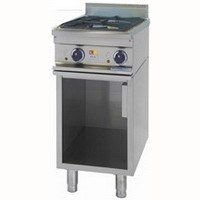 Профессиональная газовая плита 700-й серии, производства KOGAST (Словения) модель PS-Т27/P, является одним из важнейших устройств оснащения горячих цехов для приготовления различных блюд в на плитной посуде. Данная модель станет хорошим выбором для предприятий питания средних размеров (заведения фаст-фуда, большинство ресторанов и кафе на 80–120 посадочных мест). Варочная поверхность газовой плиты PS-Т27/P имеет две круглые атмосферные горелки из серого чугуна (крышки эмалированные). Одна горелка имеет мощность 3,5 кВт, а вторая - 5,5 кВт. Решетки-упоры, устанавливаемые над горелками для размещения кухонной посуды, выполнены из чугуна. Такие упоры обеспечивают стабильное размещение массивной посуды,служат источником дополнительной аккумуляции теплового излучения и являются к тому жарорассеивателями, обеспечивающими ровное температурное поле в месте горения. Их использование позволяет предотвратить избыточный нагрев пространства внутри плиты и увеличить срок службы всех рабочих элементов. Кроме того вокруг горелок есть специальные вставные поддоны для сбора разлитой жидкости.Электромеханическая панель управления размещена в верхней части плиты под горелками на передней панели. Данное расположение является более удобным для работы поваров (управление - "под рукой"). Для плавного изменения тепловой мощности горелок используется два регулятора интенсивности горения раздельно для каждой горелки, есть пьезоподжиг. Благодаря плавной регулировке нагрева удается более точно подобрать режим приготовления для каждого блюда. Плита оснащена системой газ-контроля , которая представляет собой устройство,автоматически прекращающее подачу газа в горелку,если огонь случайно погаснет или газ изначально не подожгли.Основными элементы системы являются: датчик наличия пламени(термопара) и электромагнитный клапан-отсекатель,перекрывающий газоподводящую трубку. Термопара,установленная около горелки, накаляясь от пламени, генерирует напряжение, с помощью которого клапан открываетс