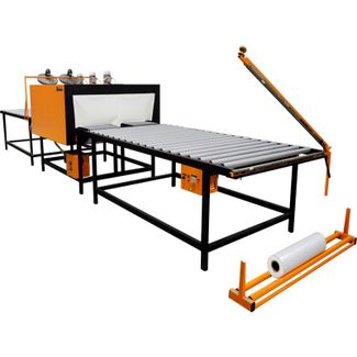 Термоупаковочная машина ТМ-7Р М2 (ручная) предназначена для упаковки длинномерных изделий, к числу которых относятся различного вида пиломатериалы: доска, двери, короба, и т.п. в термоусадочную полиэтиленовую пленку. Тип машины: Ручная Тип пленки: Полиэтилен (ПЭ) Состав машины: