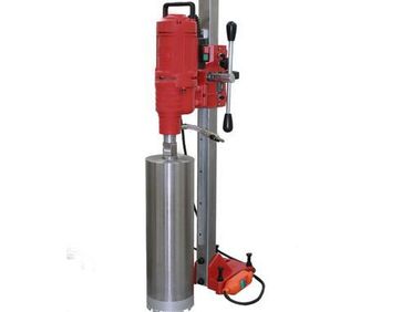 Прочная стальная сверлильная стойка, устойчивая к деформациям; Конструкция сверлильной стойки и каретки обеспечивает точность сверления и исключают вибрацию; Компактные габариты и малый вес; Лёгкая транспортировка, а так же сборка и разборка установки из-за простой и компактной конструкции; Двигатель мощностью 41800 Вт, в прочном алюминиевом корпусе, обеспечивает оптимальную скорость вращения и мощность; Электронный блок управления с кнопками пуска и останова; Механическая система защиты от перегрузок обеспечивает долгий срок службы и снижает износ деталей; PRCD переключатель на 3-х метровом кабеле обеспечивает безопасность работы и предохраняет электросистему алмазной сверлильной установки от скачков напряжения в электросети; Рабочий ход каретки 600мм; Встроенные в каретку регулируемые направляющие обеспечивают легкую и плавную подачу сверлильной коронки; Перекидные рукоятки перемещения каретки – удобство в работе; Каретка фиксируется запорным винтом для предотвращения её перемещения при замене сверлильной коронки и транспортировке установки; Машина оснащена шлангом с краном для подачи воды в зону сверления; Ограничитель пускового тока с электронной регулировкой для плавн