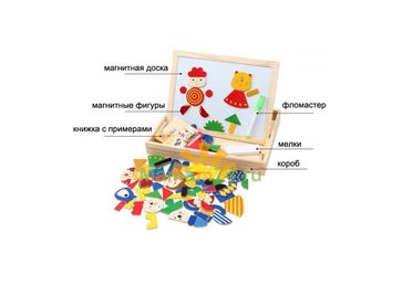 Продам новый развивающий магнитный конструктор. В комплекте короб с доской, доска с одной стороны белая магнитная-здесь можно рисовать маркером и крепить магниты, с другой стороны черная -здесь можно рисовать мелками.