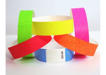 Бумажные браслеты изготовлены из прочного, водонепроницаемого материала Tyvek®. Предназначены для быстрой идентификации, учета и контроля людей, пришедших на определенное мероприятие (деление на VIP, возрастную категорию, командо-образование и пр.). Бумажные браслеты могут быть использованы в виде входных билетов. Крепятся на запястье. Функцию «застежки» выполняет клейкая основа. Благодаря специальной перфорации отклеить браслет, не испортив, - невозможно. Браслеты одноразовые, не растягиваются, не расклеиваются, не размокают, что гарантирует исключение подделок. Браслеты могут быть пронумерованы.