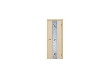 Двери с широким применением зеркала с рисунком с прямоугольными световыми проемами в комбинации с подчеркнуто строгими формами деталей полотна.