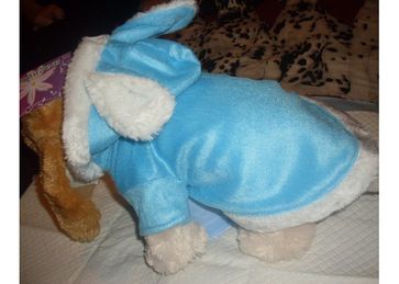 Новогодний меховой костюмчик "Зайка". Яркий голубой, с капюшоном и заичьими ушками.Размеры S(спина 23-25см), M(спина - 27-29см) и L(спина - 30-33см). Есть в наличии.