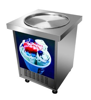 Фризер для ролл мороженого KCB-1Y FoodAtlas – устройство для производства ролл мороженого. Жареное мороженое – новое холодное лакомство, ставшее к сегодняшнему дню достаточно популярным в нашей стране. Оборудование для его приготовления представляет собой холодильную систему, заключенную в металлический корпус с рабочей поверхностью для "жарки" десерта при минусовой температуре. Рецептов приготовления бесподобного десерта много и каждый может придумать свой уникальный. Чаще всего процесс жарки сопровождается добавлением сиропов или свежих фруктов, также используют мелко рубленный или тертый орех и шоколад. Как приготовить жареное мороженое: