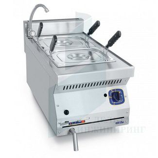 Удобные ручки позволяют быстро и безопасно вынимать корзины с готовыми продуктами из воды. Регулируемые по высоте ножки. Слив воды осуществляется из крана, расположенного на передней панели газоварки.