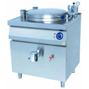 Электрический котел, производства KOVINASTROJ (Словения) модель EK-T9/150-O, предназначен для приготовления первых блюд, варки овощей и кипячения больших объемов жидкости. Главной особенностью данного вида варочного оборудования является возможность установки необходимого режима нагрева и доведения блюда до кипения, после чего степень нагрева будет автоматически снижаться. Объем рабочей чаши в данном оборудовании составляет 150 л, мощность аппарата равна 18,6 кВт. Благодаря косвенной системе нагрева пища нагревается равномерно через основание и боковые стенки чаши котла. Высокоэффективные нагревательные элементы расположены в наружном объеме варочного сосуда (пароводяной рубашке), тем самым значительно снижая теплопотерю. Дно чаши имеет круглую форму для возможности приготовления небольшого количества пищи. Рабочая температура от +60 до +120С Емкость котла изготовлена из нержавеющей стали, соответствующей всем установленным санитарным нормам и стандартам. Диаметр чаши составляет 600 мм, а ее высота – 600 мм. Емкость имеет высокую прочность, а благодаря скругленным углам ее довольно легко чистить. Крышка котла сделана из нержавеющей стали, ее удобно открывать/закрывать с помощью выполненной из термостойкого материала ручки, не греющейся в процессе работы. Корпус данной модели изготовлен из нержавеющей стали и соответствует всем стандартам и нормам гигиены профессионального кухонного оборудования. Благодаря эффективной технологии нагрева и хорошей изоляции котла тепло продукту передается равномерно, тем самым препятствуя его прилипанию к основанию и стенкам чаши. Выгрузка пищи из чаши выполняется через расположенный на передней панели кран. Данная модель имеет следующие размеры (мм): 800 (ширина), 900 (глубина), 900 (высота) и вес – 113 кг. Прибор питается от электрической сети с напряжением 400 В и частотой 50 Гц. Аппарат оснащен электромеханической панельюуправления, на которой расположены поворотный тумблер для управлениянагревом и два световых индикатора, один из