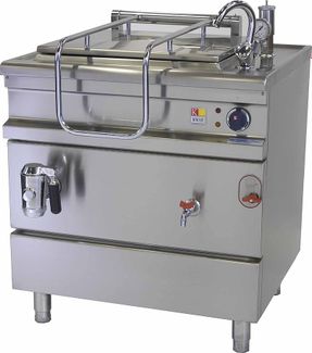Газовый котел, производства KOGAST (Словения) модель PK-Т9/150-O, предназначен для приготовления первых блюд, варки овощей и кипячения больших объемов жидкости. Главной особенностью данного вида варочного оборудования является возможность установки необходимого режима нагрева и доведения блюда до кипения, после чего степень нагрева будет автоматически снижаться. Объем рабочей чаши в данном оборудовании составляет 150 л, мощность аппарата равна 21 кВт. Благодаря косвенной системе нагрева пища нагревается равномерно через основание и боковые стенки чаши котла. Высокоэффективные газовые нагревательные элементы расположены в наружном объеме варочного сосуда (пароводяной рубашке). Дно чаши имеет круглую форму и позволяет использовать данную модель даже для приготовления небольшого количества пищи. Емкость котла выполнена из нержавеющей стали с соблюдением всех гигиенических норм. Диаметр чаши составляет 600 мм, а ее высота – 550 мм. Емкость имеет высокую прочность и долговечность, а благодаря скругленным углам ее довольно легко чистить. Крышка котла сделана из нержавеющей стали, ее легко и удобно открывать/закрывать с помощью выполненной из термостойкого материала ручки. Корпус данной модели выполнен из нержавеющей стали и соответствует всем стандартам и нормам гигиены профессионального кухонного оборудования. Благодаря эффективной технологии нагрева и надежной изоляции котла тепло продукту передается равномерно, тем самым препятствуя его прилипанию к основанию и стенкам чаши. Выгрузка пищи из чаши выполняется через кран, расположенный на передней панели. Данная модель имеет следующие размеры (мм): 800 (ширина), 900 (глубина), 900 (высота) и вес – 144 кг. Прибор работает на природном или сжиженном газе. Расход газа не превышает 2,22 м3/ч – для природного и 1,65 кг/ч – для сжиженного. Аппарат оснащен механической панелью управления, на которой расположен поворотный тумблер для управления нагревом и два световых индикатора, один из которых показывает наличие подключения к
