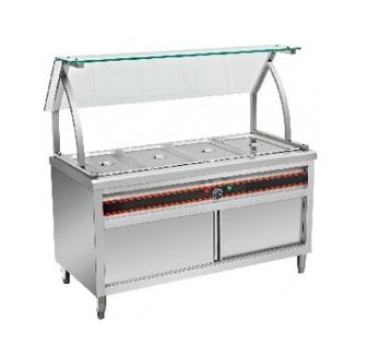 Мармит BN-B01 (AR) предназначен для поддержания постоянной температуры вторых блюд на предприятиях общественного питания и торговли. Модель оснащена терморегулятором и встроенным шкафом для посуды. Опоры и емкость для гастроемкостей выполнены из нержавеющей стали, навес - из закаленного стекла. Особенности