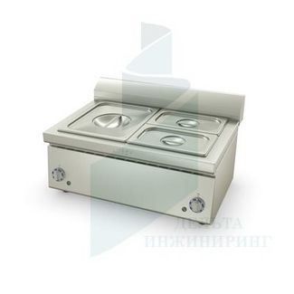 Мармит предназначен для размещения в нем гастроемкостей: GN-1/4х150 мм – 2шт., GN-1/2х150 мм – 1шт. Гастроемкости с крышками входят в комплект поставки (2 шт GN-1/4). Для установки гастроемкостей меньших размеров предусмотрена съемная перемычка из нержавеющей стали.