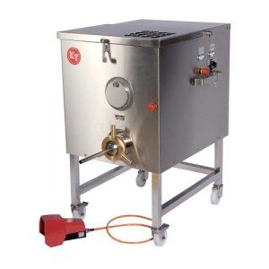 Автоматическая мясорубка, производства КТ (Финляндия) модель LM-98/A UNGER НЕРЖ, предназначена для измельчения рыбы или мяса. Имеет высокую производительность 1150 килограмм фарша в час. Данная модель оборудована съёмной системой ножей и решеток unger, которая включает в себя шнек, крупную решетку, два двусторонних ножа, среднюю и мелкую решетки. Шнек имеет две постоянных скорости вращения 320 и 160 оборотов в минуту, что позволяет с легкостью перерабатывать самое жесткое мясо. Горловина шнека диаметром 98 мм и двусторонний нож изготовлены из нержавеющей стали. Мясорубка имеет жесткую блокировку горловины, что улучшает рубку мяса и увеличивает срок службы решетки и ножей. Аппарат оснащен самозатачивающимся ножом - это очень удобно и позволяет постоянно держать нож острым и готовить фарш всегда быстро и качественно. Высокая производительность сочетается с экономным энергопотреблением. Мясорубка работает от однофазной сети с напряжением 220 В и частотой 50 Гц. Мощность устройства 4,1 кВт. Наличие двух двигателей позволяет применять мясорубку как для смешивания фарша, так и для измельчения. Благодаря самопадающему смесителю имеется возможность выгрузки фарша в оболочку через специальную насадку прямо из емкости мясорубки. Емкость мясорубки, объемом 80 литров, накрывается прозрачной крышкой, позволяющей следить за рабочим процессом. На крышке расположено отверстие, позволяющее добавлять ингредиенты во время работы аппарата без остановки двигателя. Корпус мясорубки, изготовленный из нержавеющей стали, имеет размеры 725 мм (ширина), 950 мм (глубина), 1170 мм (высота) и вес 230 кг. Корпус легко очищается, практически не подвержен коррозии. Прибор имеет напольное исполнение и устойчиво размещается на передвижной подставке с 4-мя вращающимися колесиками с блокировкой. Мясорубка LM-98/A UNGER НЕРЖ станет неотъемлемой частью кухни. Она будет незаменимым вспомогательным инструментам повара в ресторанах, кулинариях и других торговых точках. Качественные фарши, приготовленные с