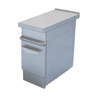 С фасадной стороны установлен нержавеющий плинтус, предотвращающий попадание грязи под модуль и облегчающий санитарную уборку помещения.