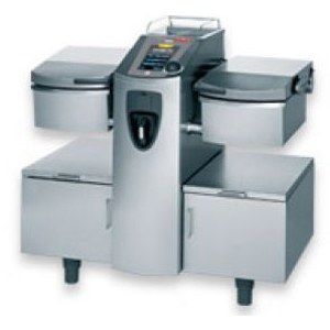 Многофункциональная сковорода, производства Rational (Германия), модель VarioCooking Center 112+, позволяет варить, жарить, готовить на гриле, во фритюре и варить под давлением. Аппарат объединил в себе достаточно широкий ряд оборудования и при этом значительно (до 50%) сократил занимаемую им площадь. VCC 112+ без проблем заменит на вашей кухне такое оборудование как опрокидывающаяся сковорода, котел и фритюрница. Причем данная сковорода работает вдвое быстрей и эффективней.Особенностью данной модели является наличие функции приготовления под давлением, причем само давление контролирует и поддерживается в течении всего периода готовки. Аппарат оснащен уникальной системой нагрева Vario Boost™, благодаря которой, всего за 4 минуты достигается температура 250 °С, а потом система автоматически поддерживает ее несмотря на потери тепла во время открытия крышки сковороды во время загрузки продукта. С помощью системы нагрева Vario Boost™ тепло продукту передается равномерно, тем самым препятствуя его прилипанию к тигелю.VCC 112+ оснащен двумя сковородами, каждая объемом 14 л. С их помощью можно готовить около 50 порций в день. Благодаря тому, что аппарат имеет именно две сковороды, можно одновременно готовить в двух различных средах, например в одной пасту или соус, а во второй – стейки или картофель фри. Высота борта чаши сковороды составляет 900 мм, а площадь каждой нагревательной поверхности – 11 дм2. Рабочий объем, как и сам корпус, в данной модели выполнен их высококачественной стали AISI 304, что соответствует всем стандартам и нормам гигиены профессионального оборудования, а также положительно влияет на качество приготавливаемой пищи. Более того, слив воды после приготовления продукта или после очистки происходит без опрокидывания чаши сковороды, непосредственно через тигель. Для ухода за сковородой используется встроенный ручной душ с возвратным механизмом и плавной регулировкой струи. Опрокидывание сковороды происходит с помощью электроцилиндра. Рабочий объем имеет