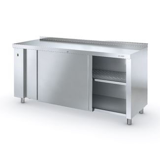 Стол технологический с подогревом является дополнением к линиям раздачи питания или может использоваться как отдельный предмет оборудования раздачи питания.Стол используется:- для подогрева тарелок перед выкладкой на них продуктов питания;- для сохранения температуры продуктов питания в гастроемкостях или других емкостях перед подачей на линию раздачи или выкладыванием в тарелки блюд. Столешница, боковые стенки и двери изготовлены из нержавеющей стали AISI430. Дно и задняя стенка - из оцинкованной стали. Борт 50 мм высотой является прямым продолжением столешницы. Нагрузка на столешницу должна быть не более 100 кг. В комплект стола входит одна перфорированная полка из нержавеющей стали. В конструкции стола предусмотрен замок для блокировки дверей. Нагрев внутреннего объема осуществляется с помощью ТЭНов. Включение ТЭНов осуществляется с помощью выключателя, расположенного на фасадной стороне стола. Для равномерного распределения тепла по всему объему стол оснащен двумя вентиляторами. Ножки модуля выполнены из нержавеющей стали AISI304, имеют пластиковую опорную часть и регулируют высоту стола в пределах ±20 мм.Габаритные размеры (ДxШxВ), мм : 1600х600х920 Номинальное напряжение, В : 220 Номинальная мощность, кВт : 0,6 Время разогрева объема стола, мин : 30…40 Максимальная температура внутри объема, °С : +50 Масса, кг : 92 None Страна производства: Россия Есть доставка.