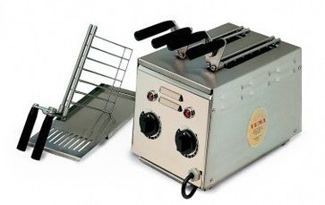 200X310Х290 мм;1,1кВт;230В; 4 нагревательных элемента. Тостер из нержавеющей стали с 2 вертикальными независимыми нагревательными отделениями и 2 зажимами для быстрого поджаривания хлеба, бутербродов или лепешек типа “piadina”. Продукты помещаются в зажимы, а затем в вертикальные нагревательные отделения, и через несколько минут вы получите прекрасно поджаренные тосты. Эти аппараты выполнены полностью из нержавеющей стали для обеспечения лучшей гигиеничности.Вес-нетто (кг): 6Длина (мм): 200Ширина (мм): 310Высота (мм): 290Вес-брутто (кг): 8Длина в упаковке (мм): 220Ширина в упаковке (мм): 400Высота в упаковке (мм): 410Напряжение (В): 230Мощность (кВт): 1.1 None Страна производства: Италия Есть доставка.