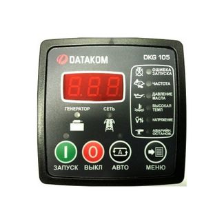 Панель управления DATAKOM DKG-105 является цифровым микропроцессорным устройством, имеющим все необходимые фунции, для автоматического управления электрогенераторной установкой. Монтируется в стандартное окно 72x72mm и является экономным по цене и эффективным по занимаемой площади, решением для управления электростанцией.В автоматическом режиме производится контроль трех фаз сети и автоматическое управление запуском двигателя, его остановкой и переключением нагрузки. Во время работы электростанции происходит отслеживание состояния датчиков защиты двигателя и дополнительных входов защиты.DKG-105 имеет весь необходимый набор программируемых таймеров и пороговых значений величин. Программирование конфигураций реле, дает возможность работы с различными двигателями, включая бензиновые. Программирование производится при помощи кнопок на передней панели.Дисплей отображает следующие параметры: