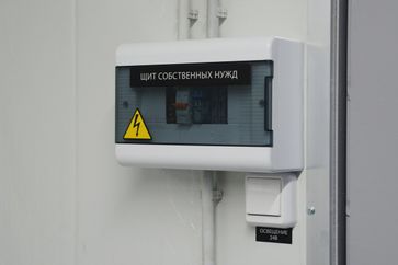 Силового металлического каркаса Стены и потолок из сэндвич-панелей толщиной 50 мм. Пол покрыт рифлёным листом толщиной 3 мм. Входная стандартная дверь, изнутри дополнительно утеплена. Дверь оборудована доводчиком. Тип замка - с возможностью внутреннего закрывания. Отверстия для ввода-вывода кабелей.