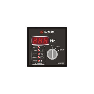 Контроллер DKG-155 Datakom -является микропроцессорный блоком и используется для запуска/остановки генераторного агрегата вручную, используя замок зажигания на передней панели.В положении OFF , питание отсоединено от модуля, таким образом достигается нулевое энергопотребление.Когда двигатель работает, устройство контролирует его состояние, и отключает двигатель автоматически в случае возникновении аварийной ситуации. Сигналы сбоев определены группой светодиодов, отображается только первый сбой.Устройство может быть опционально снабжено входом для магнитного датчика оборотов.Datakom DKG-155 включается, когда ключ повернут в положение RUN. Это позволит также активизировать топливный соленоид. Двигатель запускается с помощью поворота ключа в пружинное положение START. Как только двигатель запустится, ключ должен быть отпущен.Проверка состояния включается только после таймера отсрочки проверки сбоев. Этот таймер сбрасывается до 45 секунд, если на устройство подается питание, сброс до 10 секунд, когда двигатель заводится.Двигатель останавливается немедленно, если происходит следующий сбой: