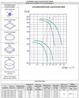 Сертификаты соответствия: № РОСС RU.МГ01.В03480; № РОСС RU.МГ01.В03482; № С-RU.ПБ25.В.00863; разрешение №РРС 00-046529 Вентиляторы радиальные низкого давления для обычных сред предназначены для перемещения воздуха идругих газовых смесей, агрессивность которых по отношению к углеродистым сталям, обыкновенного качества, не выше агрессивности воздуха с температурой до + 80 0С, не содержащих пыли и других твердых примесей в количестве более 100 мг/м3, а также липких веществ и волокнистых материалов.Вентиляторы применяются в стационарных системах вентиляции и воздушного отопления производственных, общественных и жилых зданий, а также для других санитарно-технических и производственных целей.Вентиляторы имеют рабочее колесо левого и правого вращения с загнутыми назад лопатками специальнойформы. Спиральный корпус – поворотный. Вентиляторы изготавливаются по 1-й и 5-й конструктивной схемесогласно ГОСТ 5976.Вентиляторы по 1-й конструктивной схеме (с непосредственным соединением с двигателем) имеют двемодификации ВР 80-75/6 и ВР 80-75/9, отличающиеся количеством лопаток рабочего колеса. Вентиляторы по 5-й конструктивной схеме (с ременным приводом) имеют одну модификацию – ВР 80-75/9.Для вентиляторов по 1-й конструктивной схеме предложена комплектация двигателями, позволяющимосуществлять частотное регулирование скорости вращения (исполнение 1П)Давление: Низкое и среднее Всасывание: Одностороннее Корпус: Спиральный поворотный Количество лопаток: ВР 80-75/6 - 6 шт, ВР 80-75/9 - 9 шт Направление вращения: Правое и левое Аналоги: ВЦ 4-70, ВЦ 4-75, ВНП-НД, ВР 80-70, ВР 84-74.1, ВР 86-73, ВР 90-70