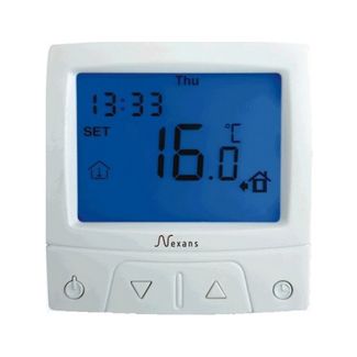 Термостат NEXANS MILLITEMP CDFR-003 - устройство для регулирования систем электрического теплого пола. Регулировка температуры основывается на данных датчика комнатной температуры или датчика пола. Устройство CDFR-003 программируется и дает возможность контролировать температуру в автоматическом режиме. Инженеры разработали систему при которой, оборудование может функционировать в 2 режимах: постоянной или программируемой температуры. Преимущества: Широкий цифровой дисплей с подсветкой; 4 возможных режима работы; Регулирование в ручном режиме; Мониторинг времени в режимах 12 и 24 часа; Отслеживание дня недели: понедельник - воскресенье; 3 варианта работы датчиков; Защита от промерзания пола; Возможность калибровки температуры. None Можно купить без предварительного заказа. Возможен самовывоз. Есть доставка.
