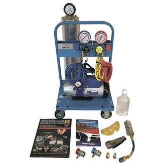 Установка для заправки автокондиционеров, позволяет быстро и эффективно заправлять хладагент в систему автокондиционирования, вакуумировать систему А/С, проверять ее на герметичность, заправлять масло и иные добавки, измерять давление в процессе заправки. На базе : двухступенчатой вакуумной помпы. Применение для : легковых/грузовых а/м. Производительность : 57 л/м. Конечный вакуум : 15 мкр.