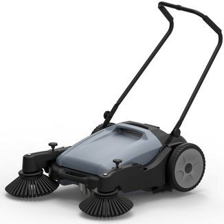 Это ручная машина для подметания, механизм которой приводится в движение толканием. Вращающееся колесо двигает ремень, ремень вращает щетку валика и боковые щетки, которые подметают поверхность и собирают мусор в емкость для мусора. Боковые щетки устроены таким образом, что сметают мусор в рабочую область щетки валика. Затем, щетка валика собирает мусор в емкость для мусора. Боковые щетки очень эффективны при подметании углов. Особенности: