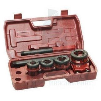 трещётка с рукояткой; резьбонарезные головки 1/2, 3/4, 1, 1 1/4; пластмассовый чемодан; паспорт с гарантийным талоном. Тип резьбы : BSPT (трубная коническая резьба), правая Вес: 3 кг None Страна производства: Россия Есть доставка.