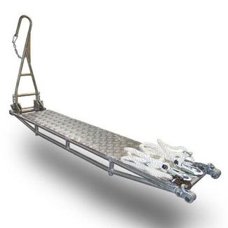 Предназначены для размещения на нем не более двух электромонтеров при проведении ремонтных работ на натяжных гирляндах изоляторов ВЛ 110÷500 кВ.Трап длиной более 3 метров для удобства транспортирования и хранения выполнен разъемным и состоит из двух полутрапов, изготовленных из алюминиевого сплава. В рабочем положении полутрапы соединяются между собой фиксирующими пальцами.Каждый полутрап представляет собой сварной трубчатый каркас с рабочим настилом из плоских панелей. В панелях выполнены отверстия с отбортовкой.Трап оснащен элементами крепления к траверсе опоры и линейной арматуре гирлянды (или непосредственно проводу). Они могут быть выполнены как в виде стальных цепей или синтетических канатов с карабинами, так и в виде жестких штанг с захватами.Стропы из синтетического каната оснащены по концам карабинами и регулируются по длине с помощью перепускных пряжек. Карабины стропов закрываются автоматически и имеют устройства, предохраняющие от случайного раскрытия.Узел крепления трапа к проводу представляет собой шарнирно закрепленную жесткую штангу с захватом на конце в виде крюка.Ширина трапа B : 0,3 м Длина трапа L : 4,7 м Длина полутрапов L1+L2 : 3,1+1,6 м Грузоподъемность : 2,5 кН Масса (трапа с крюком) : 27 кг Габариты : 4750х427х350 мм None Страна производства: Россия Есть доставка.