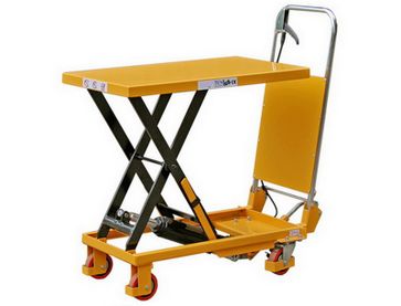 У нас можно купить тележку с подъемной платформой NINGBO RUYI SP 500 B – одноножничная модель, предназначена для поднятия грузов до 500 кг в небольших складских помещениях, на малых промышленных предприятиях, в торговых павильонах для разгрузки с легкового транспорта, на кухнях детских учреждений. Ножничный гидравлический механизм работает просто и надежно, управляется нажатием рычага. Вся конструкция изготовлена из стали европейского качества. Размер рабочей поверхности стола - 1200х800х50 мм. Незаменим для вертикального перемещения на высоту до 1,10 м.Грузоподъёмность, кг: 500 Высота подъёма, мм: 1100 Высота полностью опущенной платформы, мм: 310 Высота рукоятки, мм: 970 Глубина стола, мм: 800 Длина стола, мм: 1200 Толщина стола, мм: 50 Диаметр колёс, мм: 127 Количество нажатий на педаль для полного подъёма: 45 Общая длина, мм: 1170 Вес, кг: 149 Размер упаковки, мм: 1260х850х390 Тип упаковки: гофрокартон None Страна производства: Китай Есть доставка.