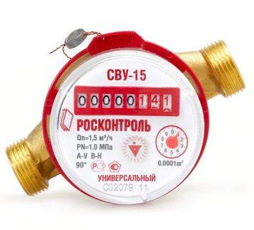 - Счетчик воды Росконтроль Ду-15 (СВУ-15В) по выгодной цене 500 р. руб.;