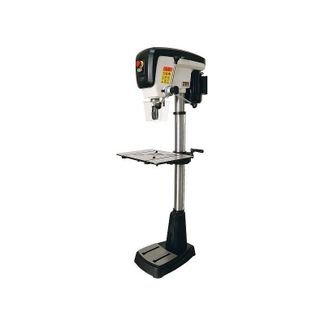 ОСОБЕННОСТИ:Регулируемый ограничитель глубины сверленияКонтроль глубины сверления по лимбуЛазерный указатель оси сверленияLED-подсветка рабочей области16-ступенчатая регулировка скорости вращения шпинделя переустановкой ремнейРабочий стол из чугунного литьяРегулировка высоты установки рабочего стола при помощи вращающейся рукояткиРегулировка наклона рабочего стола на угол до 90°Поворотный рабочий столДва Т-образных паза в столеСменная вставка в центре стола с регулировкой высотыJet JDP-17 — сверлильный станок, основная особенность которого в том, что он спроектирован специально для деревообработки. Его конструкция не исключает сверления металла, но имеет усовершенствования, важные в столярном и плотницком деле, что делает станок по-настоящему универсальным. Прежде всего, отличается от обычной сверлильная часть. Так, ход пиноли шпинделя увеличен до 127 мм, это более чем в полтора раза больше, чем у аналогичных станков слесарного назначения. Диапазон передаточных чисел редуктора расширен в область верхних значений, благодаря чему максимальная частота вращения достигает 2900 об/мин, что важно и для сверления, и для шлифования специальными насадками. Смена диапазонов производится переустановкой поликлиновых ремней, причем один из них можно ослабить или натянуть без использования инструментов за считанные секунды. Натяжной ролик фиксируется пластиковым барашком, отвернуть его можно не запачкав рук, что при работе с деревом немаловажно. Подача пиноли на весь ход производится за один оборот рукоятки. На ее оси имеется лимб для отсчета глубины сверления и регулируемый стопор-ограничитель. Рабочий стол выполнен из чугунного литья, что привычно, но его форма и размеры адаптированы не для установки станочных тисков, а непосредственно для фиксации заготовок, что предпочтительнее с учетом того, что деревянные детали, как правило, гораздо крупнее металлических. Поворот вокруг горизонтальной оси возможен на любой угол, что позволяет сверлить в торцевой части. Стол имеет квадратное