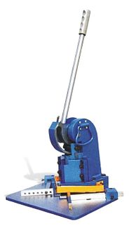 Ручной пресс для вырубки в заготовках для гибки фиксированных углов 90°.Компактен и удобен в работе, развивает усилие до 4 тоннОснащен встроенной защитой от повреждения пальцев Компактный, удобный в эксплуатации ручной угловой пресс, применяется в строительстве, монтаже кровли, вентиляции и других сферах, где требуется вырубка углов 90 градусов в металле.Благодаря переносным ручкам и легкому весу, может применяться прямо на объекте, а чугунное основание позволяет быть уверенным в креплении станка. Управляется машина одним человеком, не требует подачи энергии, передает усилие до 4 тонн на лист толщиной до 1,6мм. Для удобства работы имеет эргономичную рукоятку и упоры для точности рубки. Ножи легко снимаются и затачиваются при необходимости. Толщина обрабатываемого металла, сталь, σВ < 400 MPa (мм): 1,5 Максимальное усилие (тонн): 3 Максимальный размер вырубки (мм): 125x125 Размеры в упаковке (мм): 470x390x440 Масса нетто/брутто (кг): 22/30
