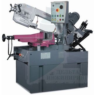 Полуавтоматический ленточнопильный станок. Тяжелое промышленное исполнение, надежная конструкция. Поворотная на угол от +45° до -60° пильная рама. Твердосплавные направляющие роликовые опоры пильного полотна. Механическое натяжение пильного полотна, измеритель усилия затяжки. Высокая точность резания. Регулируемый конечный выключатель. Гидравлические быстрозажимные тиски с большим разводом. Щетка механической очистки пильного полотна. Простая и эргономичная панель управления. Бесступенчатое регулирование скорости рабочего хода посредством гидроцилиндра. Автоматическое отключение при разрыве пильного полотна. Подача СОЖ в зону резания. Упор для заготовки со шкалой. Бесшумная работа.