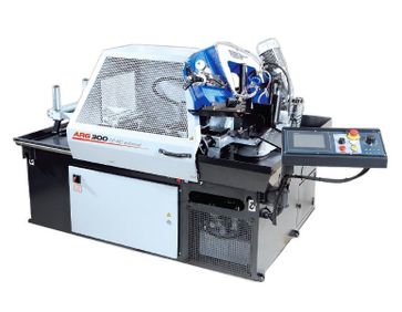Универсальный ленточнопильный станок ARG 250 S.A.F. , предназначен, в основном, для использования в условиях серийного производства, а так же в металлообрабатывающих мастерских и ремонтных цехах производств. Ленточное полотно размерами 27х0.9 представлено на рынке широкой номенклатурой и позволяет обрабатывать огромный спектр материалов, включая нержавеющие и инструментальные стали. Станок оборудован высокопроизводительным промышленным гидроагрегатом. Полный цикл пиления запускается при нажатии одной кнопки – происходит зажим материала, включение вращения пилы и подачи СОЖ, распила, выключения пилы и СОЖ, подъем рамы в исходное настраиваемое положение и разжим тисков. Все это, при наличии управляемой гидравлической подачи, позволяет получить максимальную производительность, особенно при пилении больших серий и пилении труднообрабатываемых материалов сплошного сечения. При переключении в ручной режим, можно управлять всеми функциями станка по отдельности. Благодаря наличию гидростанции, тиски могут регулироваться по усилию прижима. Высокие показатели производительности достигаются также вследствие использования частотного регулирования приводом вращения пилы, что позволяет плавно регулировать скорость резания от 15 до 90 м/мин, что также многократно увеличивает точность реза и стойкость ленточной пилы. Крупногабаритная тумба и массивные узлы поворотного механизма и крепления рамы, большая поверхность загрузочной зоны стола делают работу станка абсолютно стабильной и точной даже при обработке очень крупных заготовок. Особенности