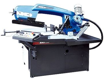 Совершенно новая технология литья пильной рамы и обновленный уникальный дизайн в модели 2014 года. Литье корпуса рамы выполнено с полыми карманами, проходящими через всю раму, что позволило добиться большей жесткости рамы и как следствие повышения точности реза. Использование прочной, широкой ленты является оптимальным выбором для обеспечения всех потребностей производства. Поэтому для новой модели используется полотно с шириной 34 мм и толщиной 1.1 мм. Это позволяет использовать данный станок для распиловки труднообрабатываемых материалов с большими сплошными сечениями, в том числе нержавеющих и инструментальных сталей. ARG 330 SAF оснащен мощным гидроагрегатом, и надежными гидрокомпонентами, что обеспечивает стабильную работу при различных режимах пиления. Весь цикл пиления запускается при нажатии одной кнопки происходит зажим материала, включается вращение ленточного полотна и подача СОЖ, включается подача, после окончания реза отключается вращение полотна и подача СОЖ, рама поднимается в исходное положение и происходит разжим материала. Все это исключает участие оператора в процессе резания и повышает точность и производительность процесса пиления, особенно в мелкосерийных производствах и обработки заготовок больших сплошных сечений из труднообрабатываемых материалов. Переключение на ручной режим позволяет отдельно управлять всеми функциями с пульта управления. Усилие зажима в тисках регулируется исходя из типа зажимаемой заготовки. Скорость резания имеет широкий диапазон плавного регулирования от 15 м/мин до 95 м/мин, что позволяет работать на оптимальных режимах, увеличивая показатель стойкости инструмента. Общая устойчивость станка обеспечивается за счет большого и прочного основания, оснащенного, в базовой комплектации съемным поддоном для стружки или, опционально, шнековым конвейером.