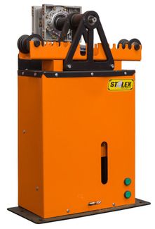 Для радиусной гибки станок оснащен одним верхним приводным вальцом и двумя прижимными. Вальцы изготовлены из высокопрочной стали и сделаны на подшипниках, что обеспечивает легкость вращения. Прижим вальцов обеспечивает гидравлический домкрат. Прижимные вальцы имеют механическую регулировку начального положения. Профилегиб EHB-40 легко размещается в небольших помещениях и занимает мало места. Простота конструкции и легкость в эксплуатации делают этот станок незаменимым на небольших предприятиях и производствах. Позволяет легко выполнить как разовые работы, так и мелкосерийное производство по гибке. Благодаря своим небольшим габаритам и относительно небольшому весу его можно использовать непосредственно на объекте. Компактные размеры и современные технические решения, применяемые в этой конструкции обеспечивает высочайшую производительность, при мобильности устройства. Особенности Stalex EHB-40