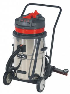 Профессиональный пылесос для сухой и влажной уборки на тележке с баком из нержавеющей стали.