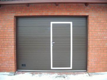 Врезная калитка позволяет попасть в помещение даже в том случае, если ворота закрыты, и открывать их полностью нет необходимости. В её конструкцию обязательно входит доводчик, значительно облегчающий пользование воротами и помогающий сохранить тепло во внутреннем помещении гаража. Устанавливаемый датчик калитки позволяет отключать электропривод, если дверь ворот открыта. Габаритные размеры врезной конструкции: 900 мм по ширине, и 1800-2200 мм по высоте. Калитка значительно облегчает использование всего комплекса ворот в целом: