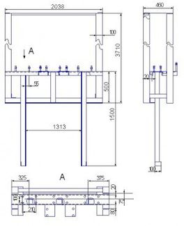 Бетонируемая рама позволяет противостоять всей конструкции ветровым, динамическим и опрокидывающим нагрузкам. Также служит для передачи массы конструкции на фундамент. Предлагаются силовые рамы двух вариантов. Выбор зависит от ширины проема и высоты ворот. Первый вариант: ширина проема — 2038 мм, высота — 3010 мм. Второй вариант: ширина проема — 3464 мм, высота — 3710 мм. Все варианты силовых рам бетонируются на глубину 1,5 метра. В силовой раме использованы швелерные конструкции.