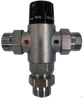 Регулируемый термостатичекий смеситель с защитой от ожогов, латунный, матовый никелированный, присоединение: 3/4" наружная - 3/4" наружная - 3/4 наружная (3 америкаки) None Возможен самовывоз. Есть доставка.