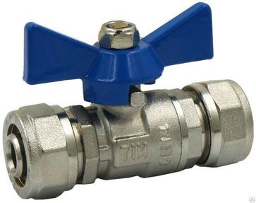 Кран шаровой латунный полный проходной с никелированным покрытием, ручка "бабочкой", присоединение: "цанга" обжимное соеднение под Ø16 - "цанга" обжимное соеднение под Ø16 None Возможен самовывоз. Есть доставка.