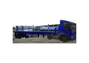 Полуприцеп- площадка 930400 с раздвижными кониками, Грузоподъемность 24 тонны. 2 осный Длина 13200 мм., ширина 2500 мм., высота 2400 мм. Ширина с выдвинутыми стойками 3300 мм., Подвеска зависимая, балансирная,на четырех продольных полуэллиптических рессорах.