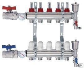 Коллекторная группа 1", 3 хода, латунный корпус, с расходомерами, комплектован: кран шаровой для соединеия с трубопроводом, термометр, авто-воздухоотводчик, сливной кран None Возможен самовывоз. Есть доставка.
