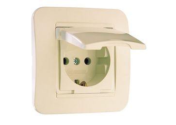 - MAKEL Розетка 1 мест с крышкой с п з к кремовая Makel 65229 в каталоге Вилки и розетки в Дзержинске;